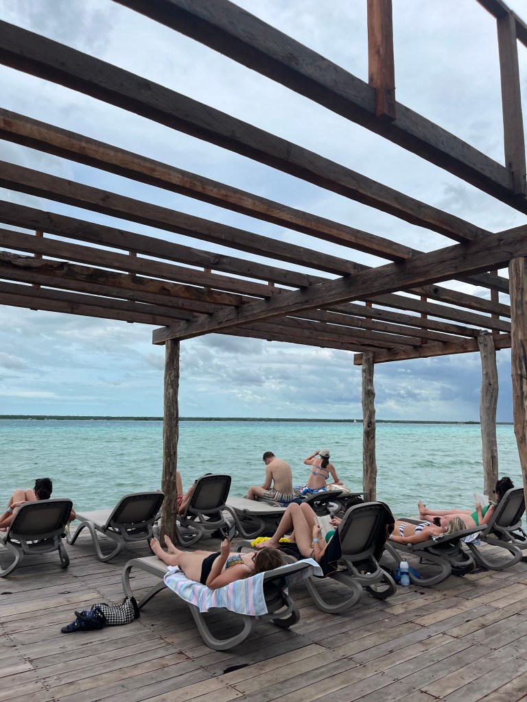 Arriving to Bacalar was rather chaotic as we walked down one street late at night to see a telephone cord go up in flames and set off sparks along the whole line. So it’s fair to say we went down a different road to our hostel.