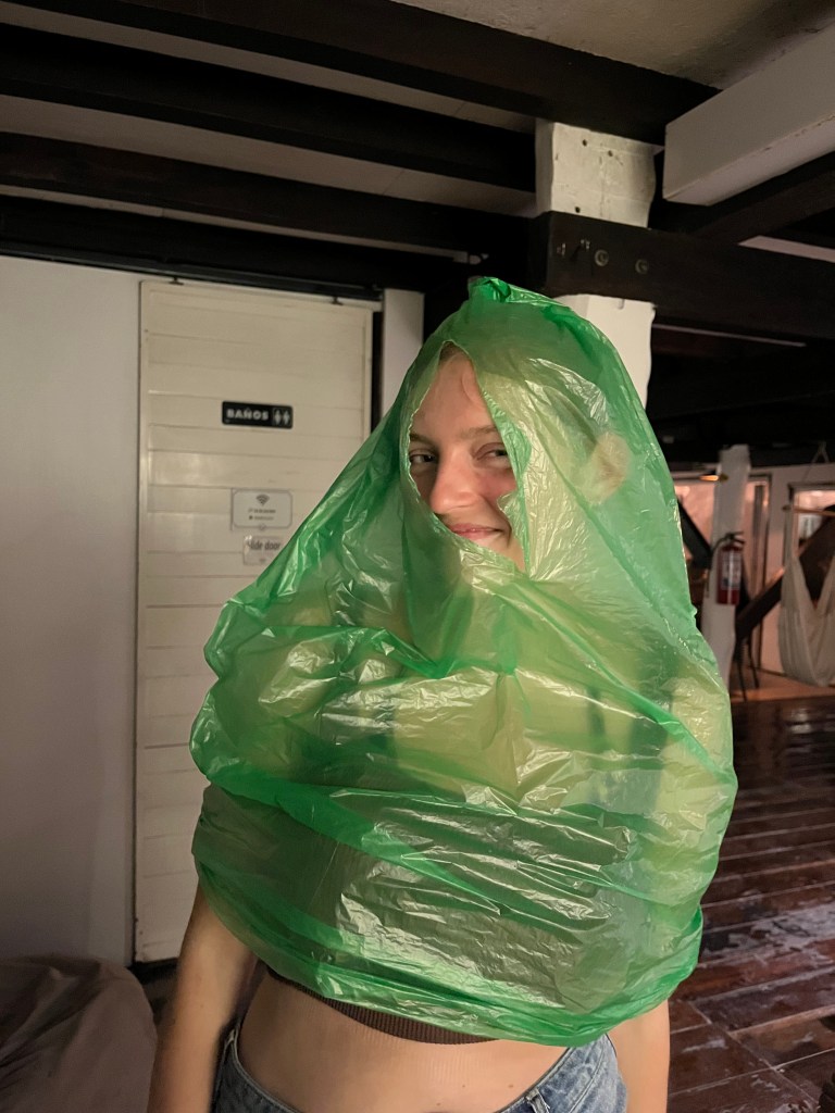 Just make sure to have a coat or like Nina above, rip into a bag and make your own personal poncho.