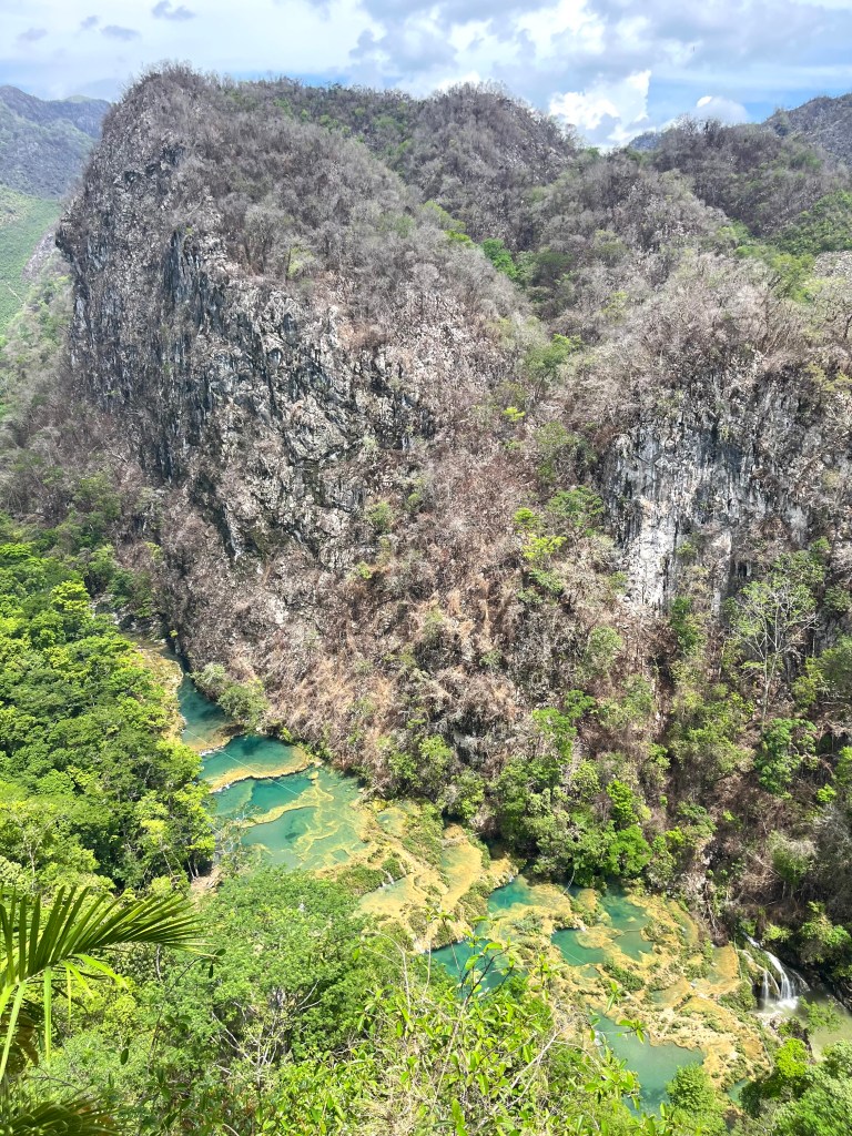 Semuc Champey is arguably one of the most beautiful views I’ve had the pleasure to see. It is a natural limestone bridge that spans a short section of the Cahabón River in central Guatemala, the river has carved a tunnel through the rock, leaving behind this 300 metre long bridge topped with a series of stunning blue pools.